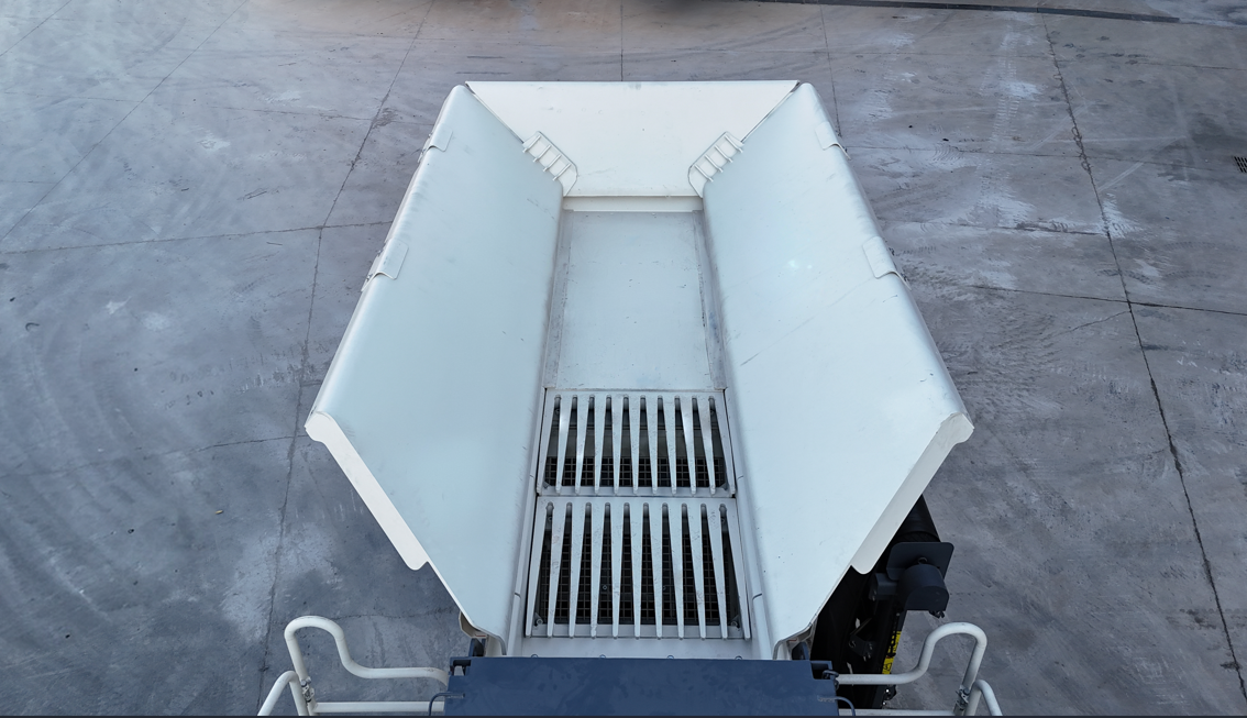 The design features a large feed hopper, which can be raised to a capacity of 9 m³. It is suitable for uniform feeding by various medium-sized and large excavators and loaders.